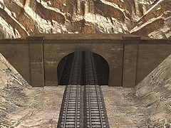 A standard gauge double track tunnel based on the disused narrow gauge tunnel at Dowd's Hill, South Australia. This version requires manual placement of the dighole and manual adjustment of vertex height. An automatically tunneling version is available on the DLS, please see: Tunnel Double Track - KSC